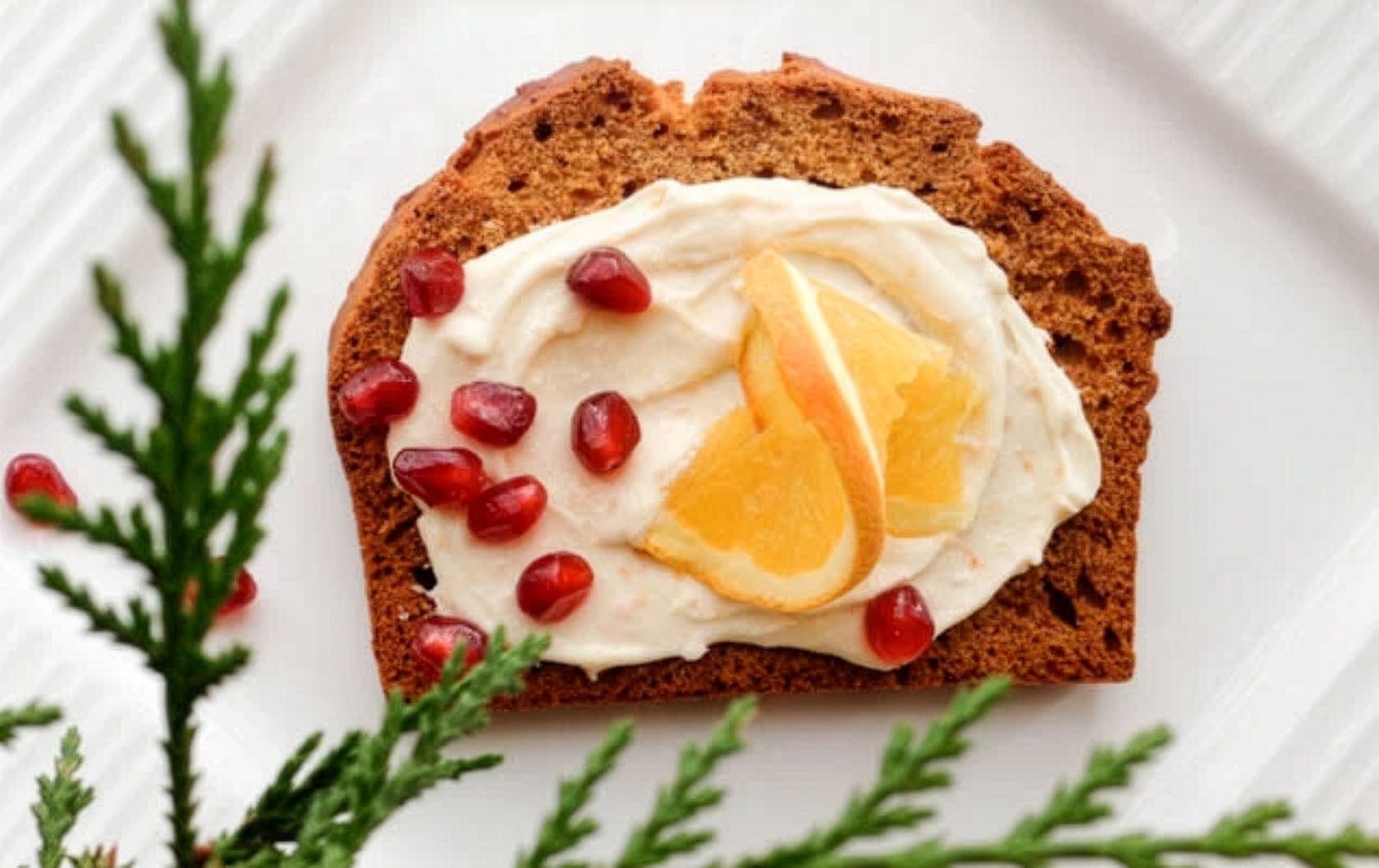 Pain d’épices, although a year-round treat in France, undoubtedly adds an air – and aroma – of festivity to the holiday season. The grownup cousin to gingerbread cookies, this “spiced bread” is baked with an assortment of warming spices and the complementary flavors of sweet citrus and honey. Bridging the gap between quick-bread and cake, you can enjoy pain d’épices all day long; as a morning breakfast with a swipe of butter, an afternoon snack with cheese, or as a sweet after-dinner treat. For a light dessert, we suggest topping slices with an orange cream cheese spread and fresh fruit. The recipe for the spread can be found below.