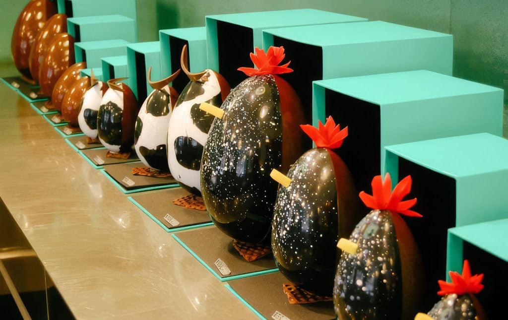 Perhaps the most common theme in Parisian chocolate shops in April are eggs and chickens. One of the most beloved shops in Paris, À La Mère de Famille, even has a carton full of very convincing-looking chocolate eggs! If you saw them in a supermarket you’d be convinced that they’re real eggs!